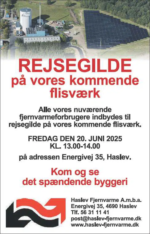 Vi holder REJSEGILDE PÅ FLISVÆRKET fredag den 20. juni 2025 for alle vores fjernvarmeforbrugere - se annoncen der er i Haslev-Faxe Posten